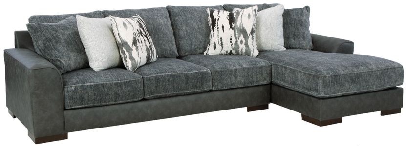 Signature Design by Ashley® Larkstone 2-Piece Pewter Right-Arm Facing Sofa Sectional and Chaise
