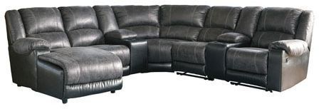 Signature Design by Ashley® Nantahala 7-Piece Slate Reclining Left-Arm Facing Sectional and Chaise with Console